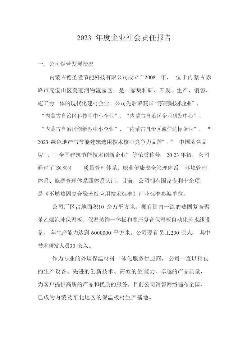 內(nèi)蒙古德圣隆節(jié)能科技有限公司成立于2019年,位于內(nèi)蒙古赤峰市元寶山區(qū)美麗河鎮(zhèn)物流園區(qū),是一家集科研、開發(fā)、生產(chǎn)、銷售、施工為一體的現(xiàn)代化建材企業(yè)。公司主營產(chǎn)品:熱固復(fù)合聚苯乙烯泡沫保溫板、保溫裝飾一體板和泡沫混凝土保溫板,年生產(chǎn)能力達(dá)到6000000平方米。